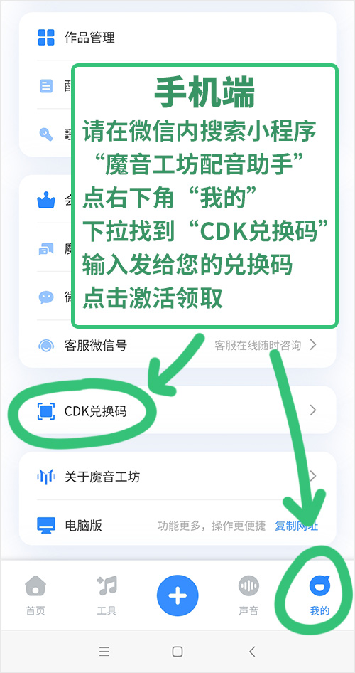 魔音工坊手机端兑换码激活方法